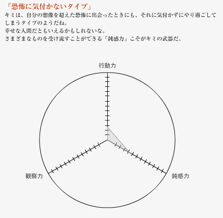 そこで公式サイトを覗いたところ、恐怖に直面した時にあなたはどうなるのか…という診断ゲームがあったのでやってみました。